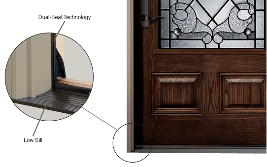 - Energy-efficient weather seals, bottom sweeps and insulation reduce utility costs making your new doors more cost efficient.
